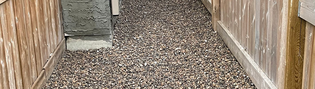 1 1/2" screened rock Chocolate mulch corner curve Replaced Fence panels